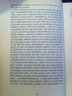 o que na verdade interessa é que é importante conhecer os caminhos que existem. as opções, os universos. talvez não interesse em absoluto e apenas a nós mas interessa se queremos ensinar ou passar informação a outras pessoas. podemos defender as nossas capelas, se as tivermos, passando ao outro a ideia real do que existe na edição e na literatura. talvez esta ideia seja inocente ou romantizada mas é importante acreditar que, se a nossa função é dar a ler, não devemos viver em caixas, isolados. podemos ser arrogantes, mas a partir do momento em que queremos ensinar e esclarecer temos de ser honestos. é na capacidade de sermos honestos intelectualmente que se legitima a arrogância e ela se transforma em opinião e posicionamento.